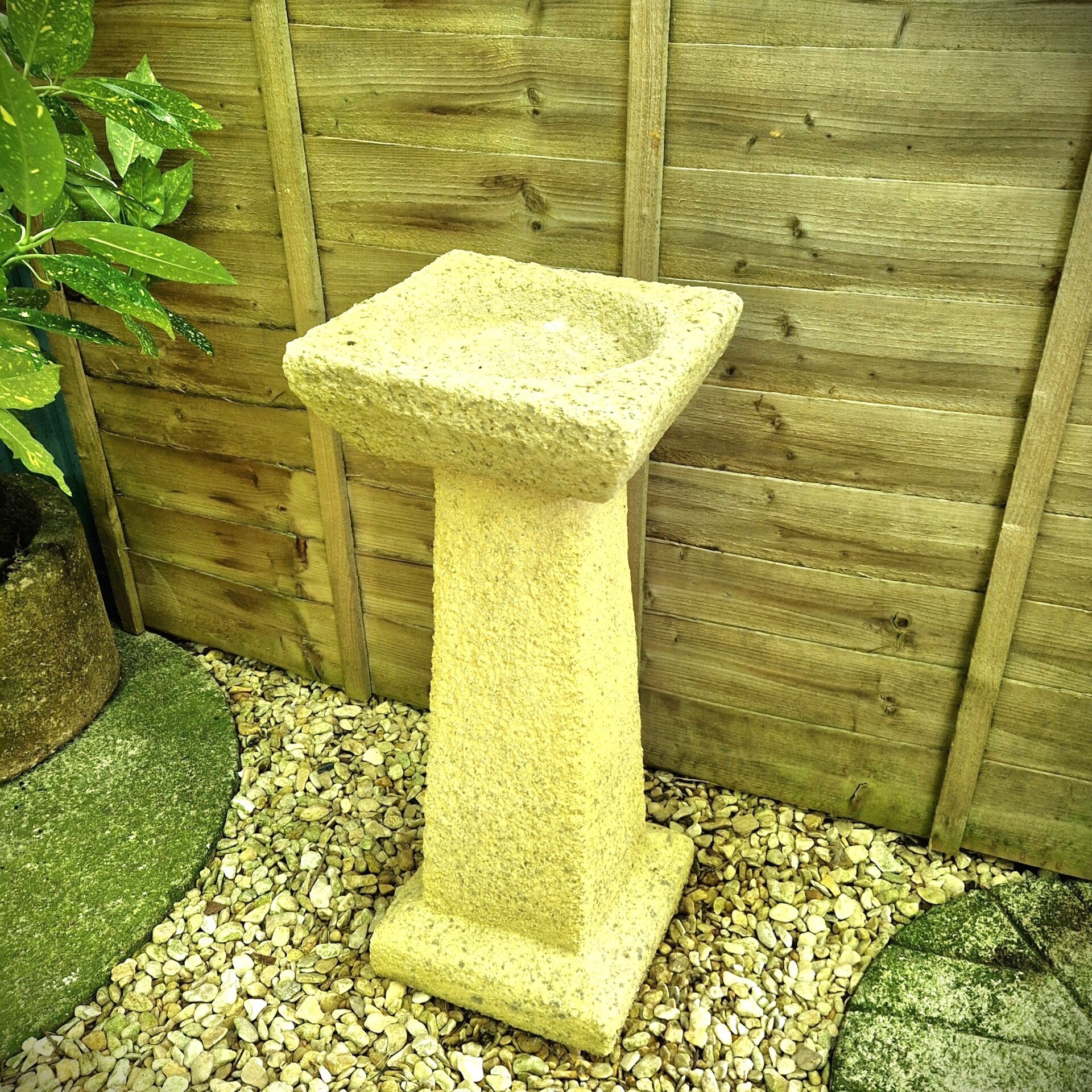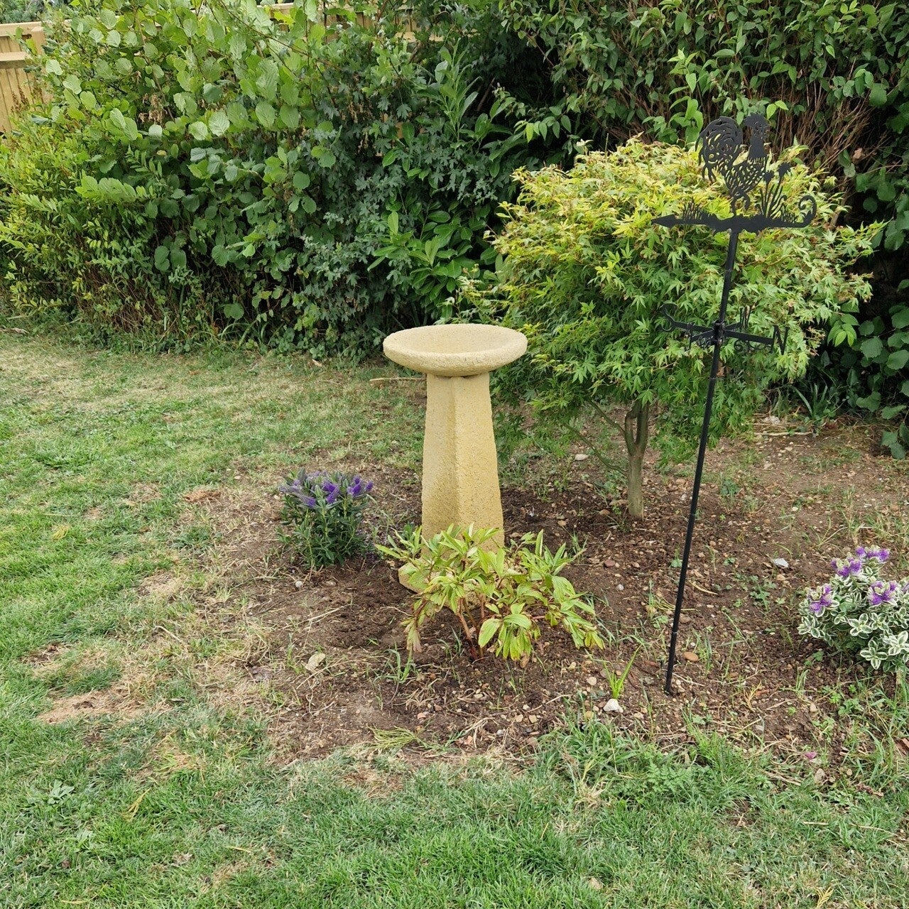 A Tall Bird Bath suitable for any garden space. This one is at a great eye height for when your sitting in your garden or conservatory. Comes in 2 pieces so the top can be removed for cleaning.