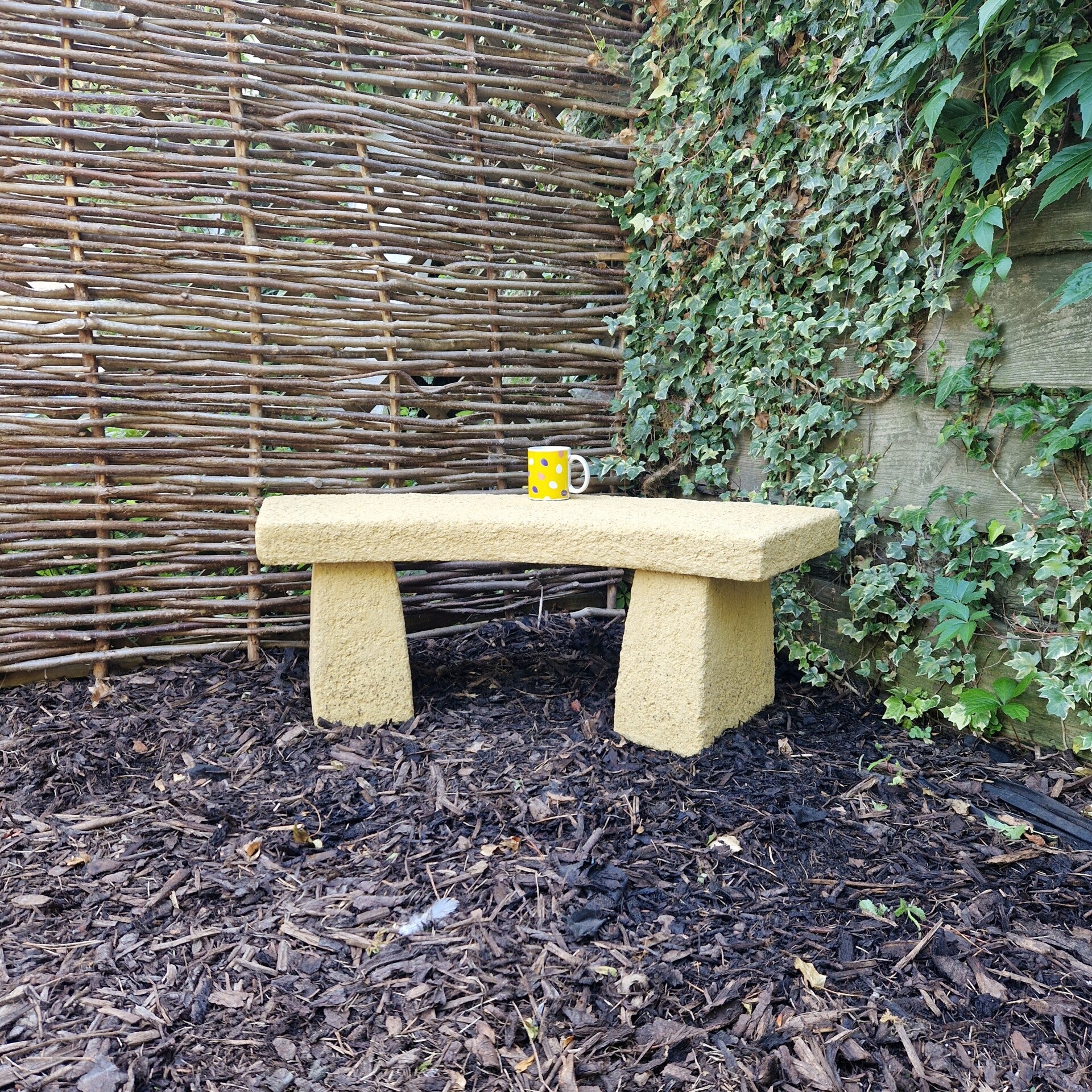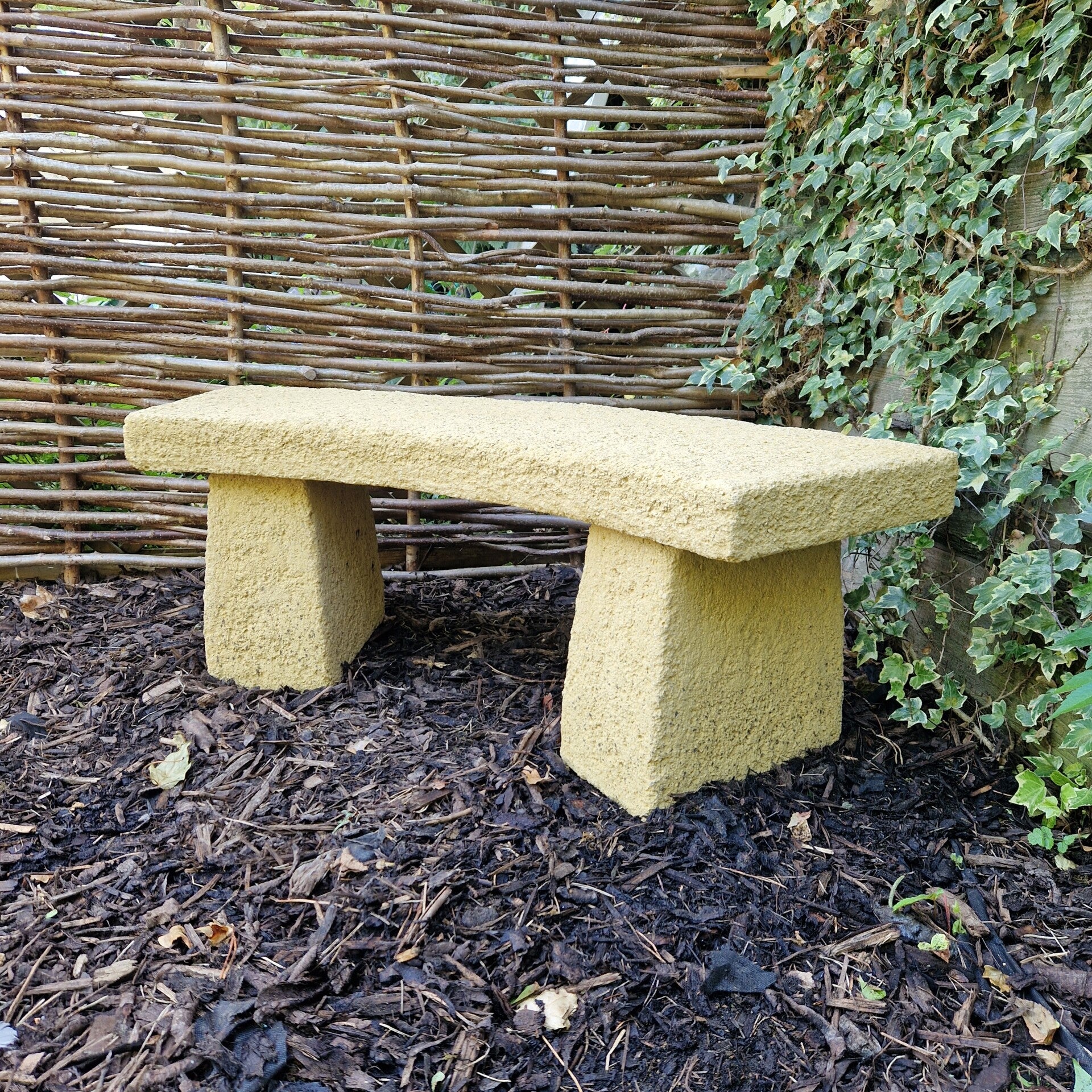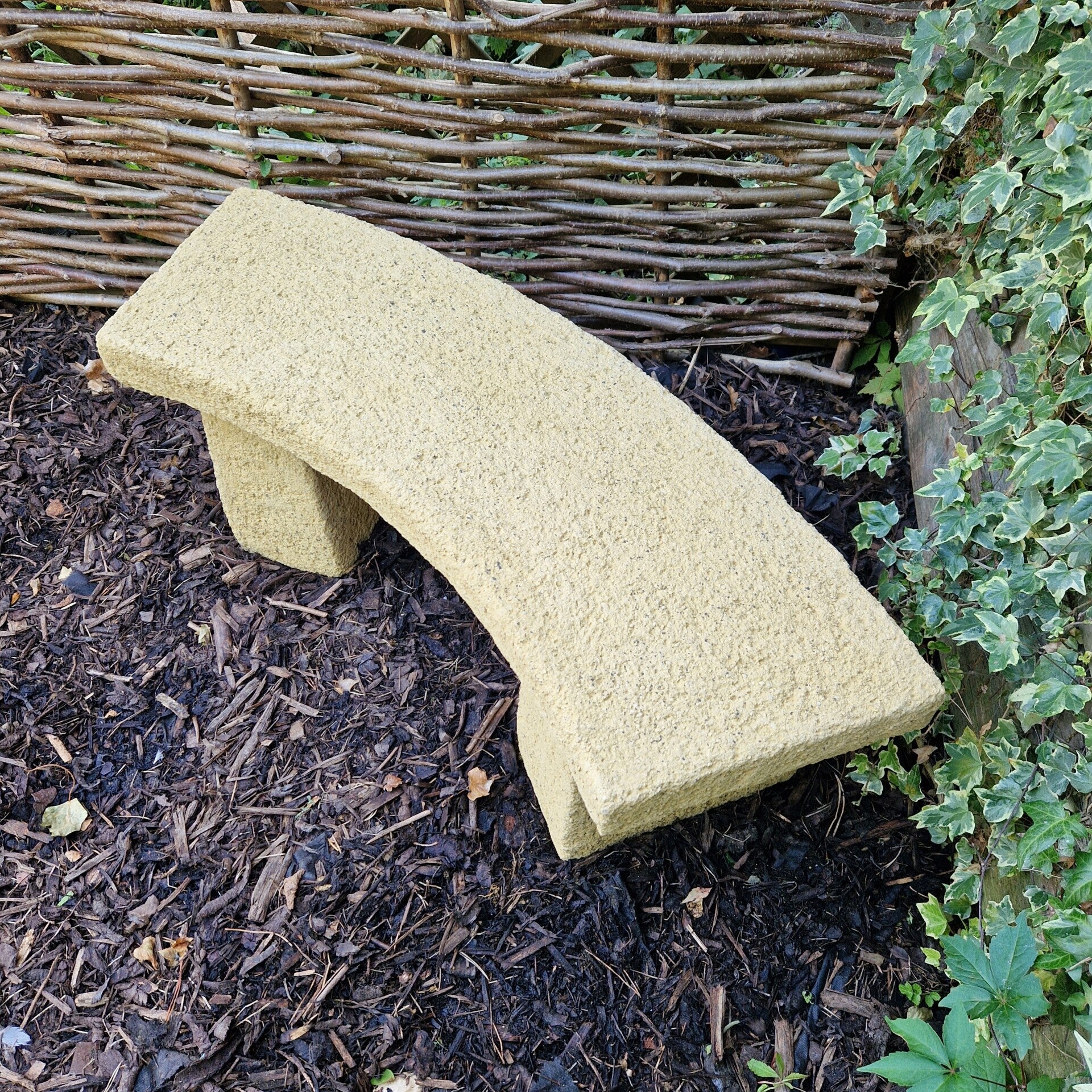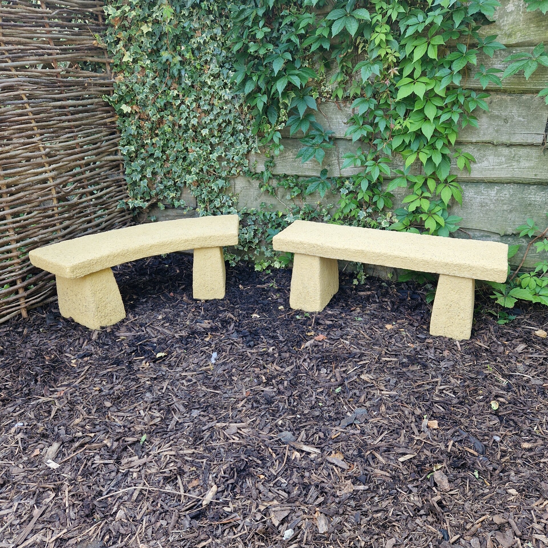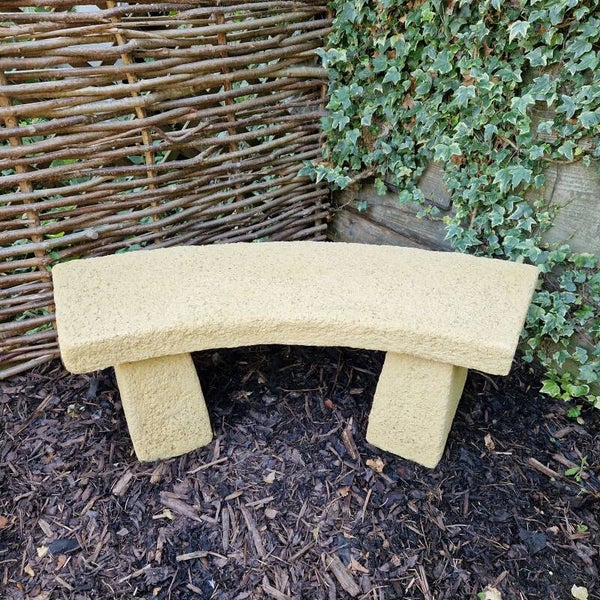 A very simple but beautifully presented garden bench ideal for that quiet spot in your garden. Over the years we have found that alot of people use them to add height for flower pots at the back of a flower bed. They add I nice curvature to a square space.They are reinforced with metal for strength. These are tops are now slightly thicker than the photos 3cm, this does'nt sound much but it actually is much more pleasing on the eye.