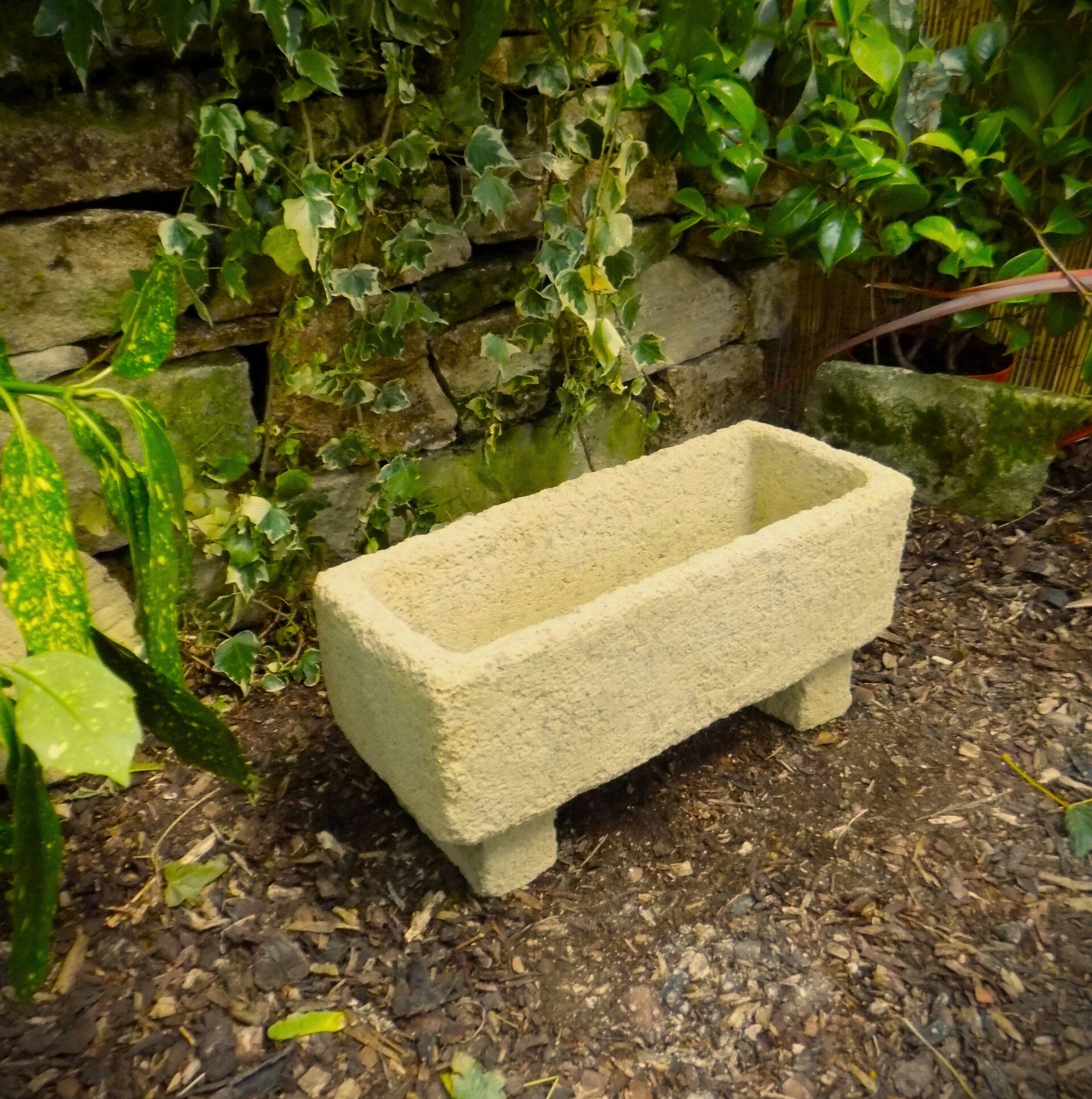 This is a small trough ideal for herbs and small flowers. It can sit as beautifully in a kitchen window as it can In your garden. This is the second smallest of the set.