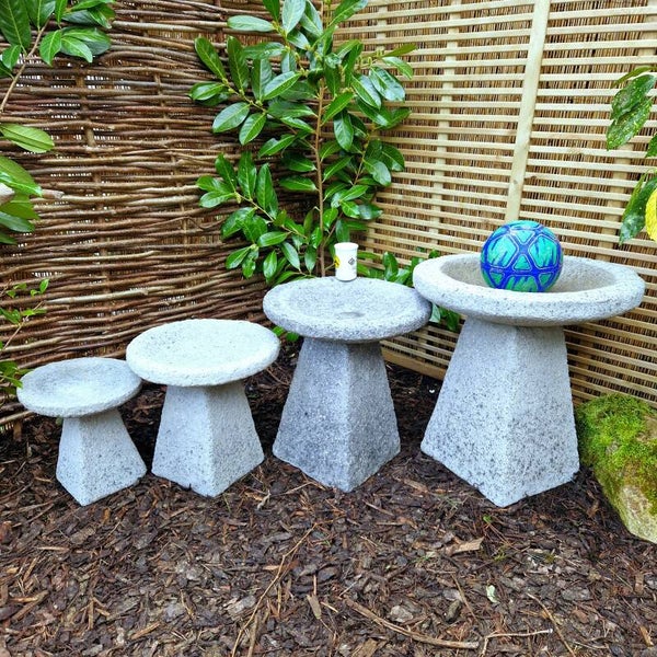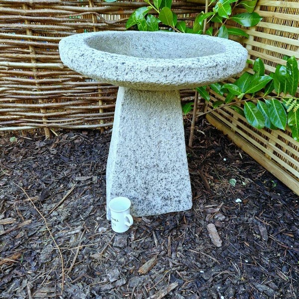 This is a monster of a bird bath & and my favourite thing I make! It looks fabulous anywhere in the garden, It's a real feature piece and will hold over a Builders bucket of water. The bowl gently slopes down in a mirror of the outside, making it still suitable for all garden birds despite the extra depth in the middle. The base's top is rounded to keep the bowl in place and weights 90kg. The bowl weighs Approximately 35kg without water and is very sturdy.